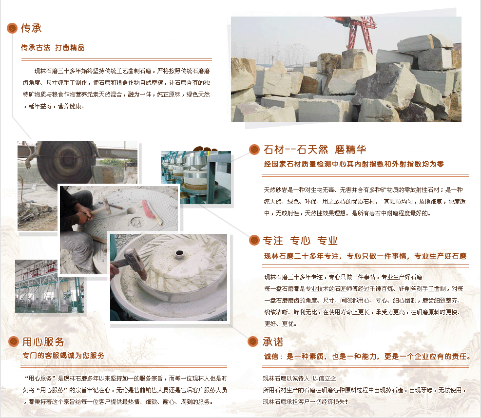 • 石磨豆?jié){機(jī)特點(diǎn) 電動(dòng)石磨豆?jié){機(jī)廠 家現(xiàn)林石磨品質(zhì)有保證 • 全自動(dòng)石磨面粉機(jī) 買(mǎi)石磨面粉機(jī)就選山東現(xiàn)林 • 香油石磨廠家直銷(xiāo) 電動(dòng)香油石磨機(jī) 現(xiàn)林石磨業(yè)內(nèi)口碑好 • 傳統(tǒng)小磨香油工藝 • 傳承石磨文化,打造健康理念,現(xiàn)林石磨做石磨行業(yè)領(lǐng)導(dǎo)品牌 • 又見(jiàn)石磨,又聞麥香,現(xiàn)林石磨! |